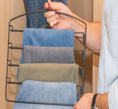 - SPACE-SAVING 5 TIER DESIGN: Optimize your closet with Fontaines 5 Tier Pants Hangers. Effortlessly organize and fit even more clothing, jeans, slacks, skirts, ties, leggings, and dress pants while maximizing space in your wardrobe.